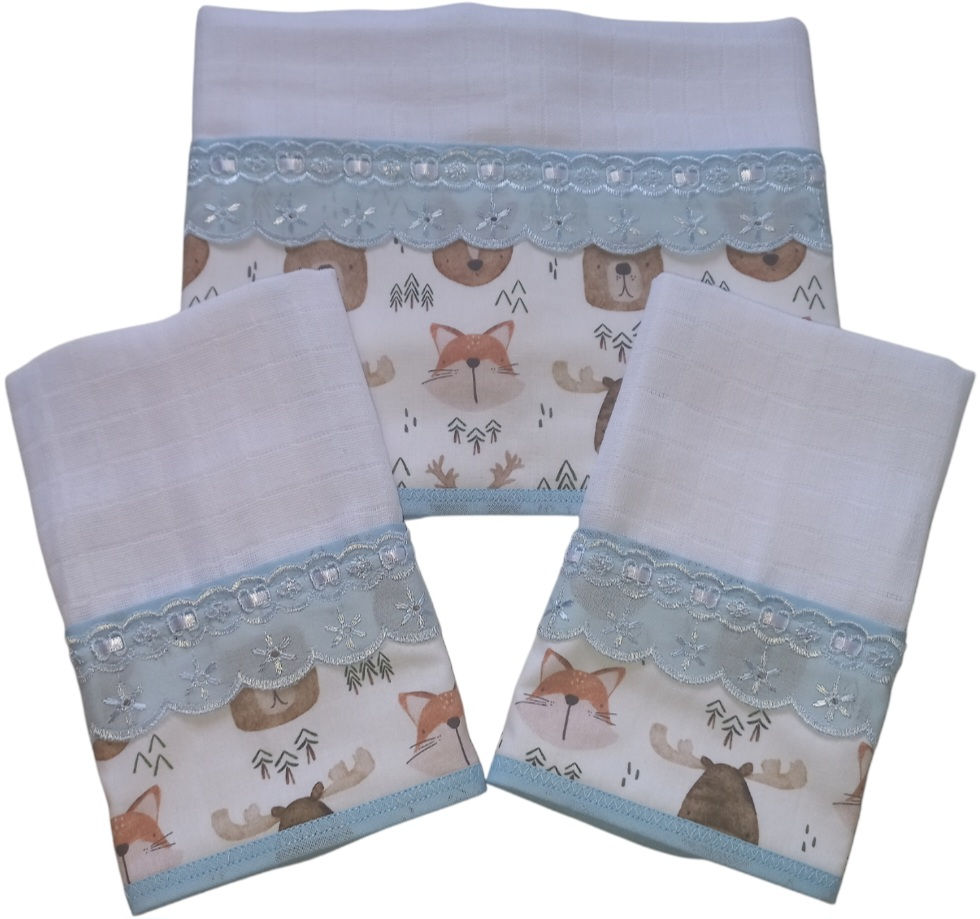 Aqui você encontra peças que compõem o enxoval do bebê, todas produzidas com tecidos macios e de qualidade. Escolha suas peças entre as estampas e cores disponíveis, nos informe através do chat no ato da compra o nome da criança para que possamos personalizar suas peças. Para um momento especial, a chegada de um bebê, oferecemos produtos únicos.